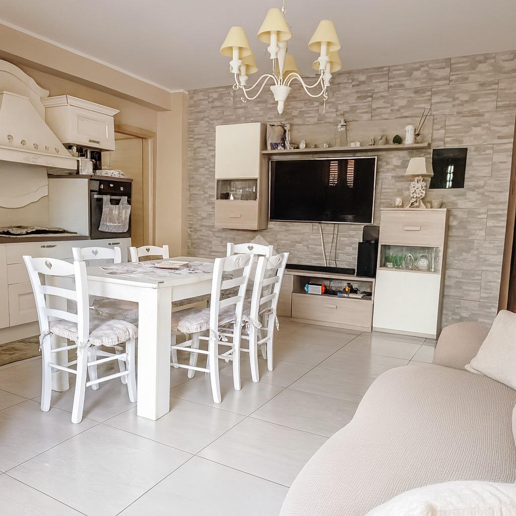 All'ingresso della casa ci accoglie un'ampia zona in open space con cucina-soggiorno ed uscita su ampio balcone.
