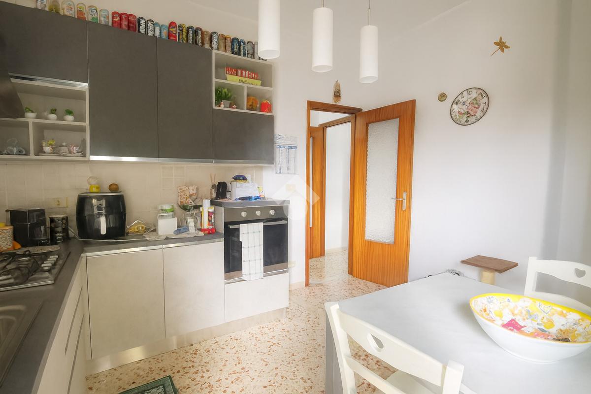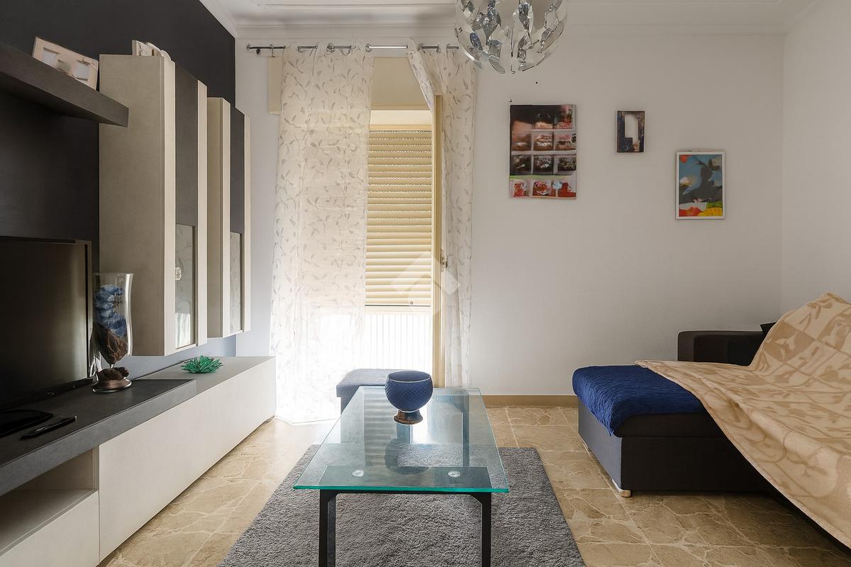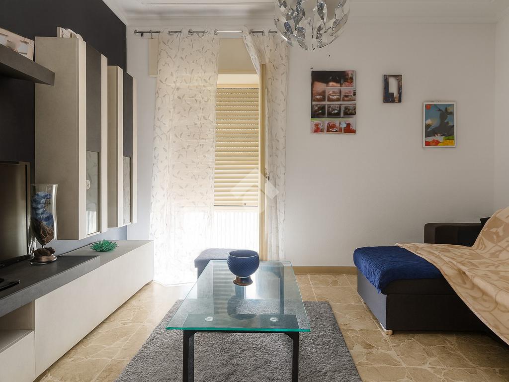 L'appartamento si trova al quarto piano di uno stabile munito di ascensore. Distribuito su una superficie di 90 mq, si compone di due camere da letto matrimoniali, un salone/sala da pranzo e di una cucina semi abitabile, oltre al bagno di rappresentanza ed alla lavanderia esterna. Tutti gli ambienti risultano luminosi e ben arieggiati grazie alla presenza di due balconi e godono della vista panoramica sul mare e sull'Etna. Le condizioni dello stabile sono da rivedere, così come i balconi. Internamente invece l'immobile richiede qualche piccolo intervento ma è pronto da abitare. Il riscaldamento è autonomo con caldaia, il bagno ed il relativo impianto idrico sono stati rifatti ed inoltre la distribuzione degli spazi consente diverse possibilità di realizzo.