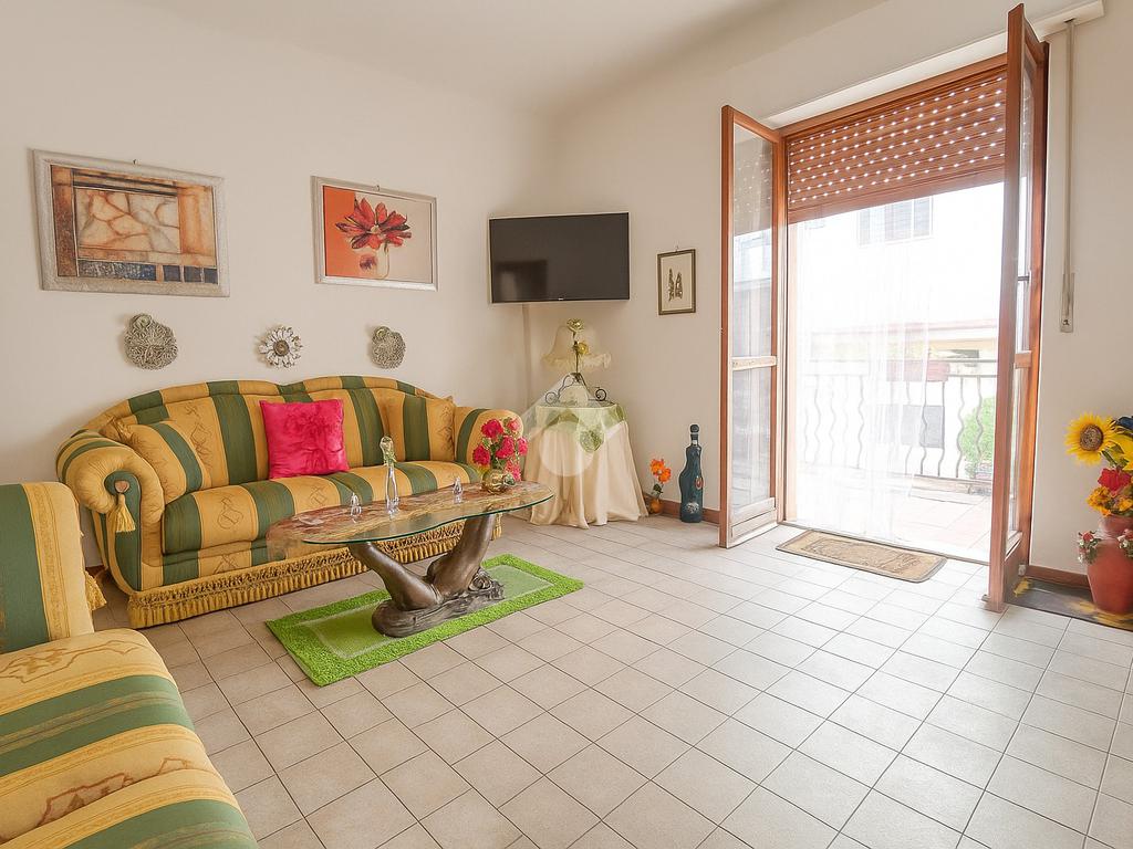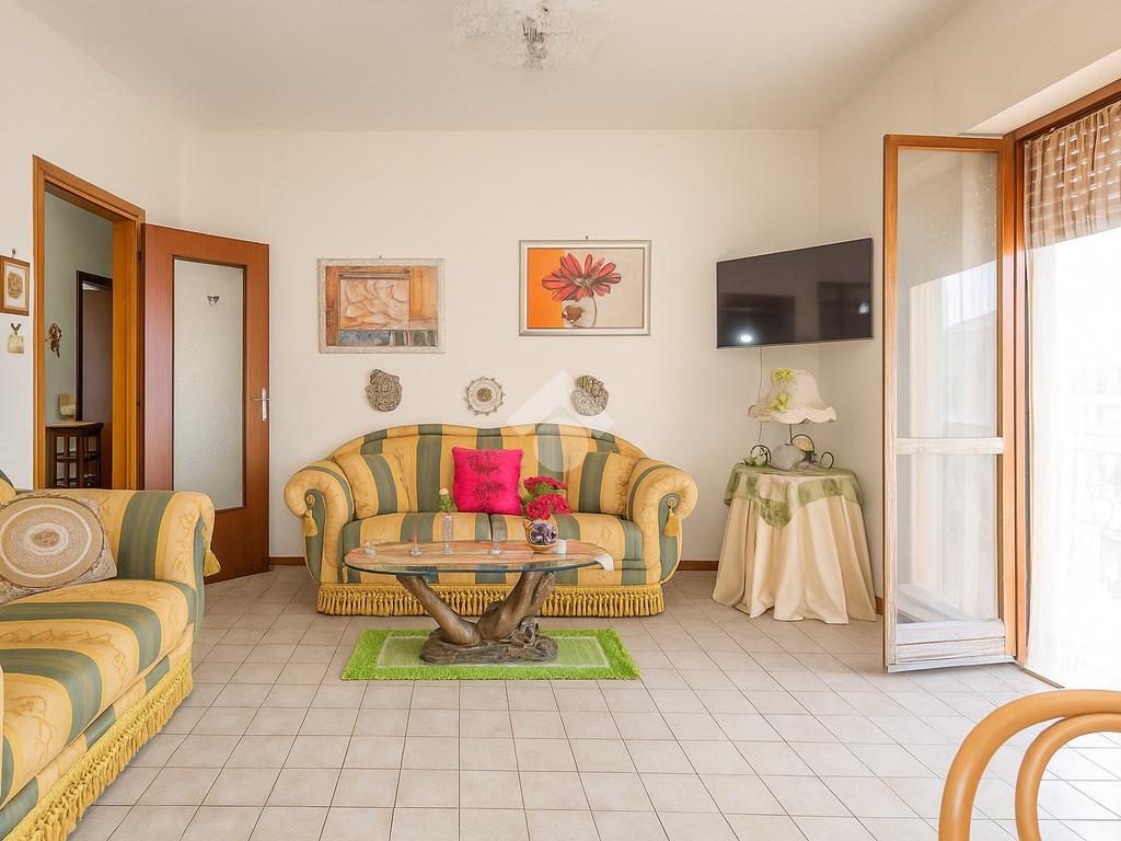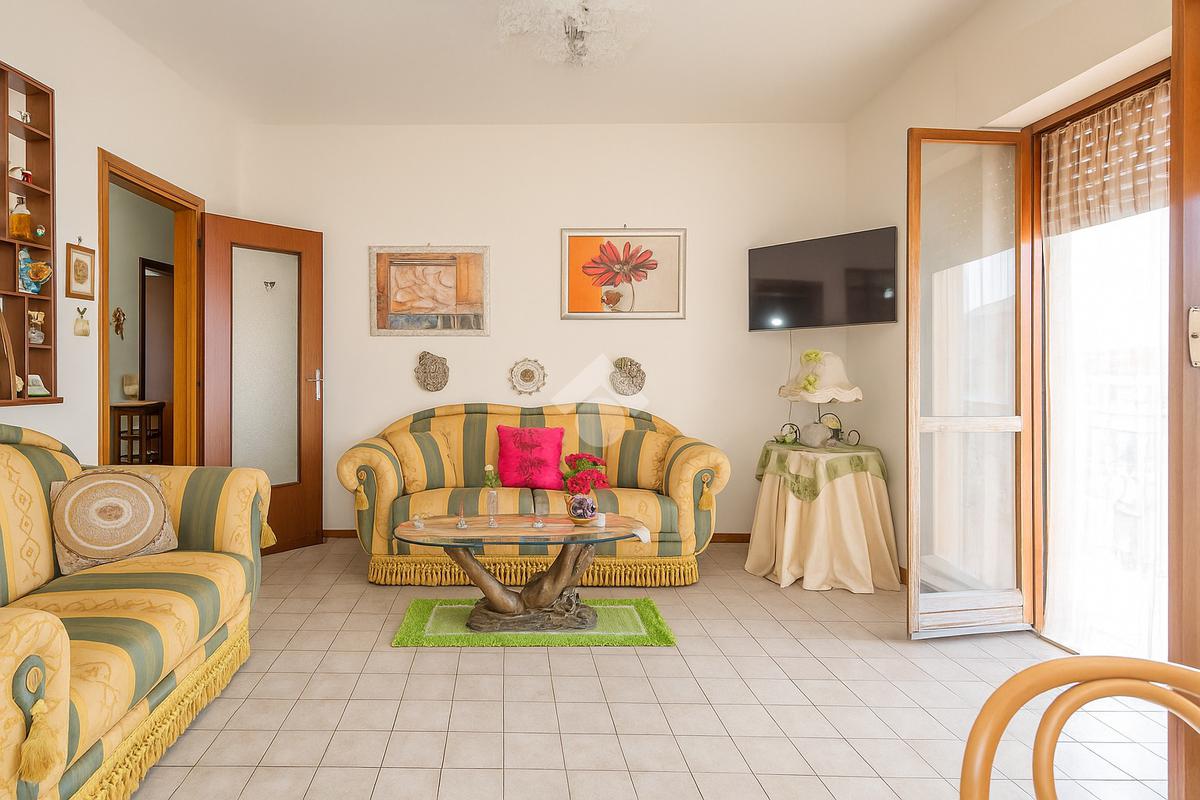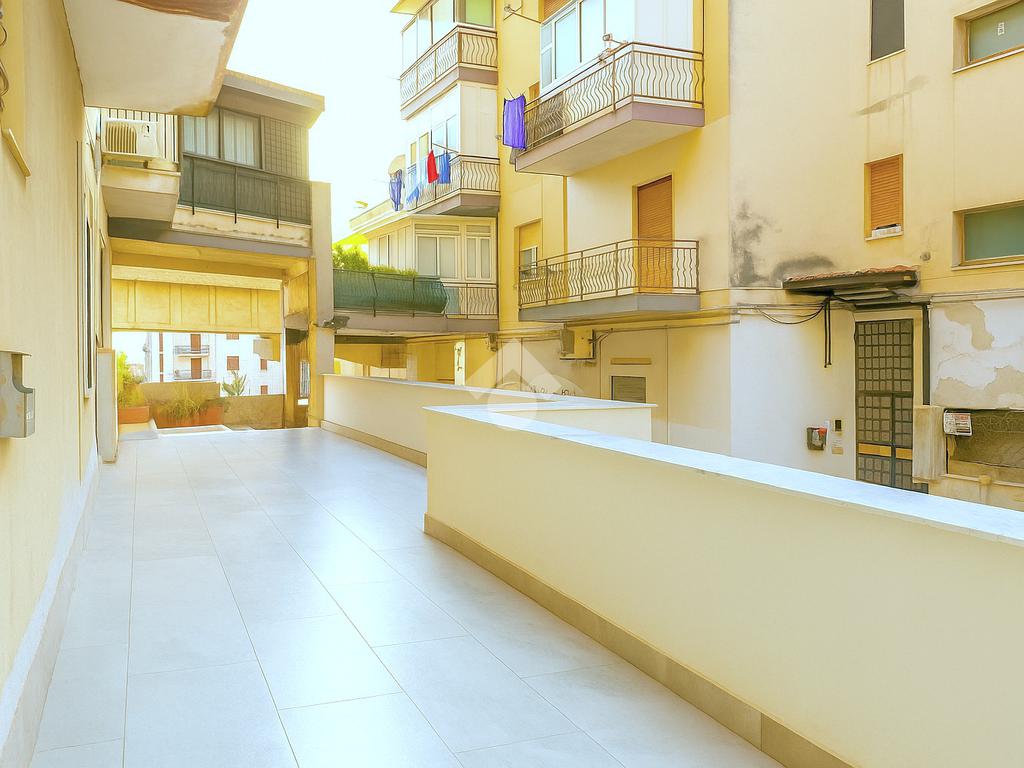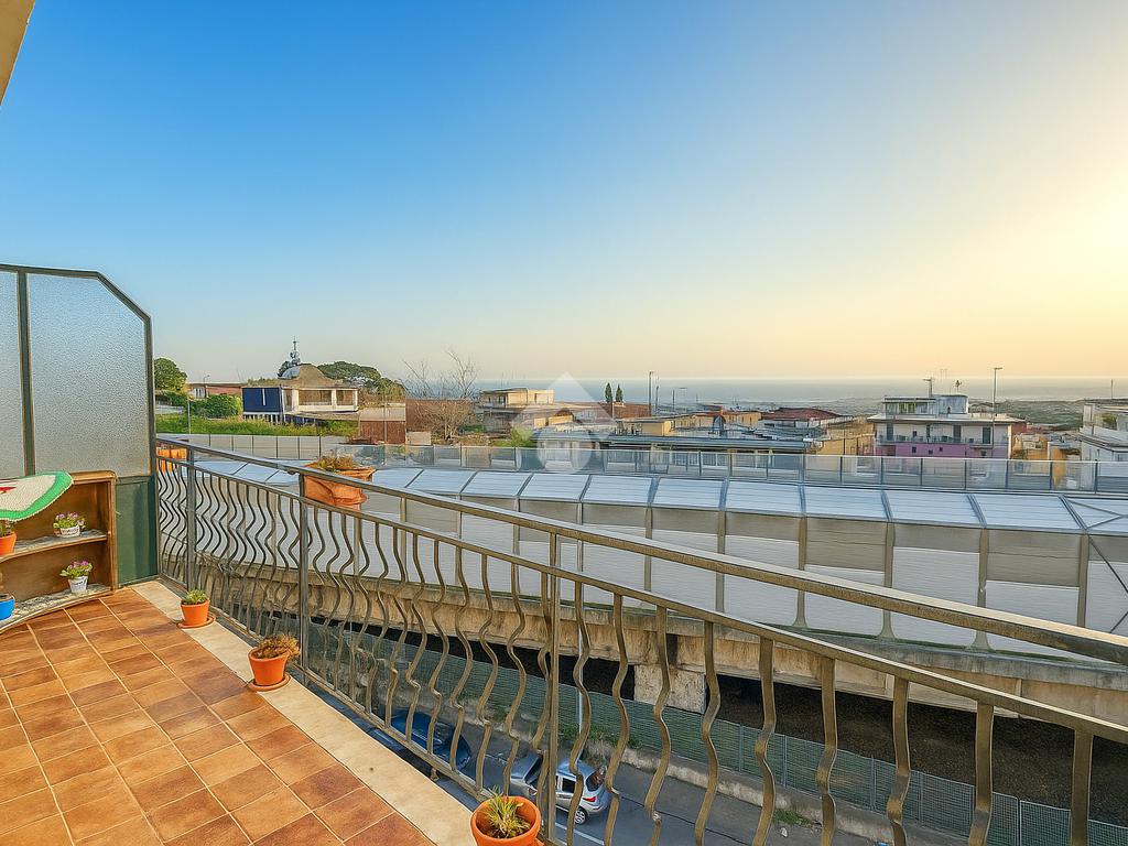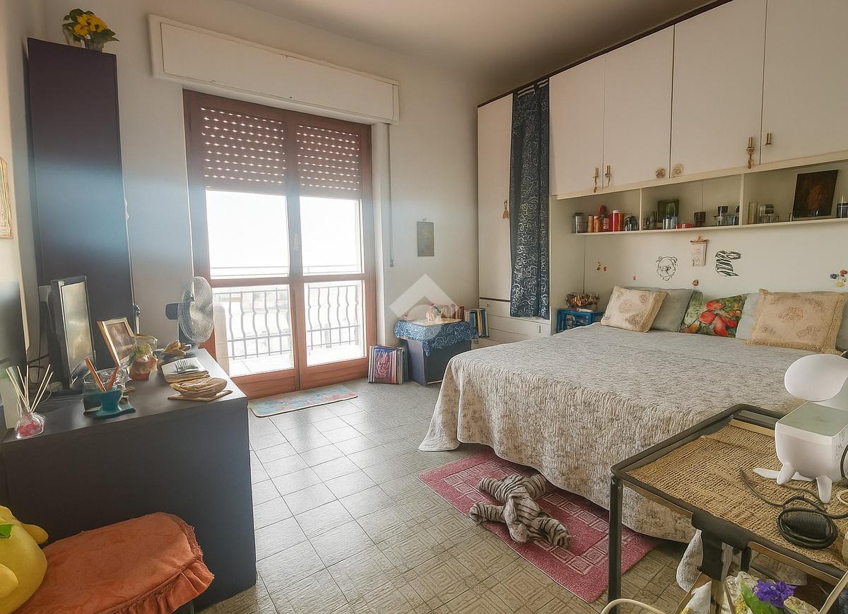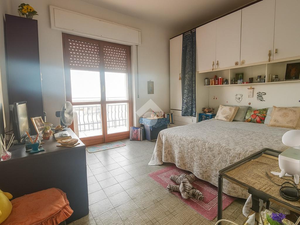 Appartamento di 95 mq posto al quarto piano di uno stabile munito di ascensore. Internamente in buono stato, si compone di un'ampia zona giorno all'ingresso in openspace, due camere da letto matrimoniali, doppi servizi e ripostiglio. Gli ambienti sono luminosi e ben distribuiti e godono della vista panoramica sul mare. Ad impreziosire questa soluzione vi è il terrazzo sovrastante di pari metratura con annessa stanza di 14 mq.