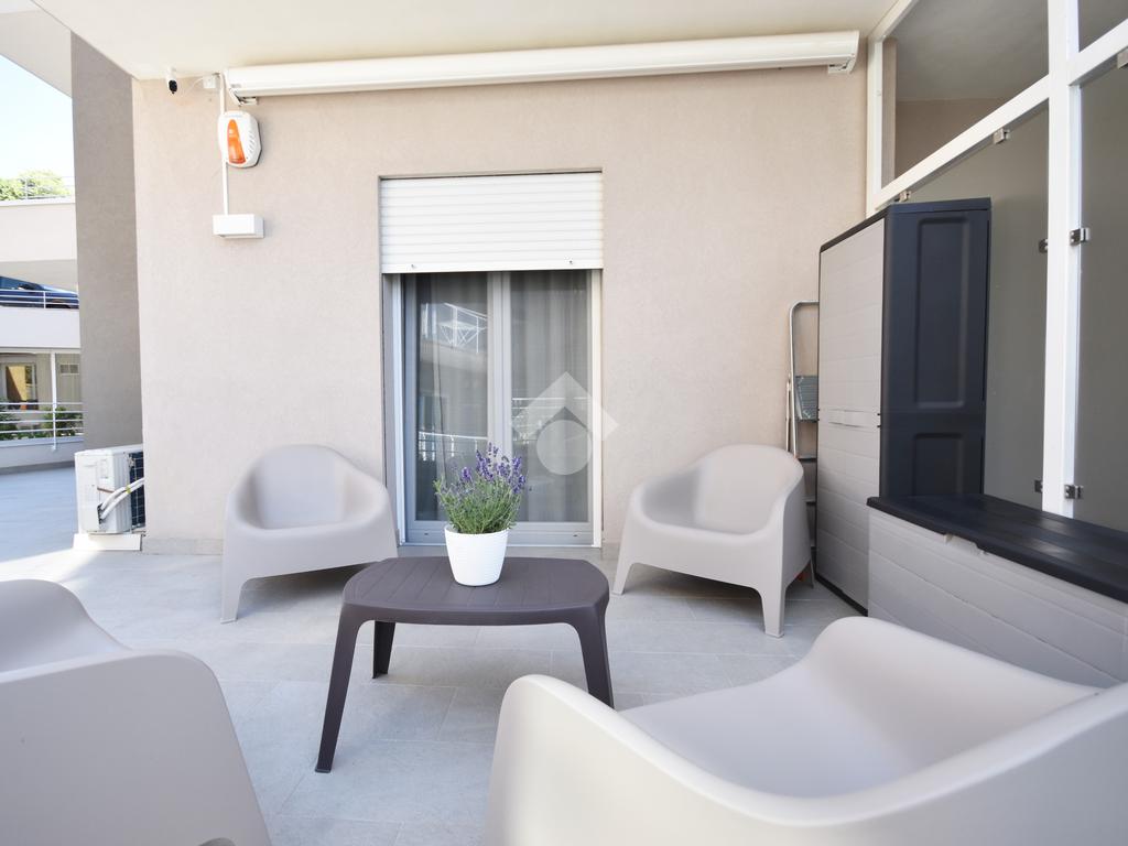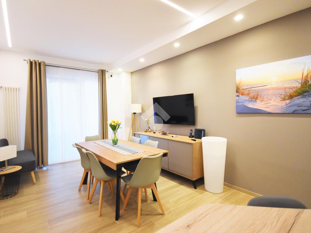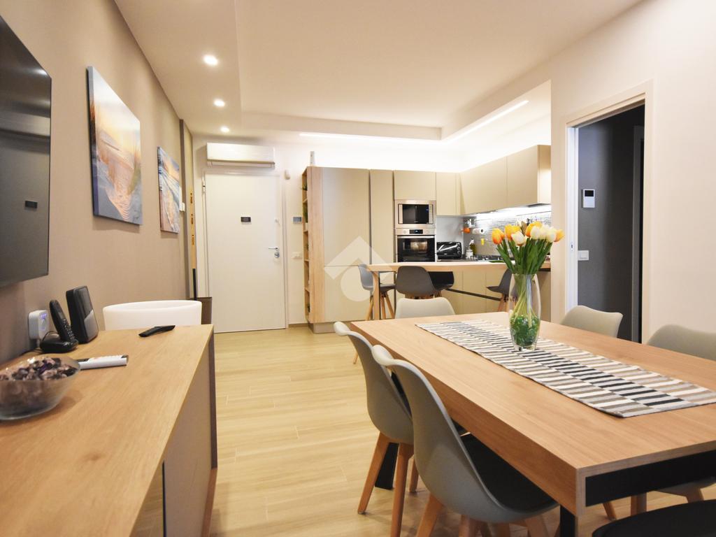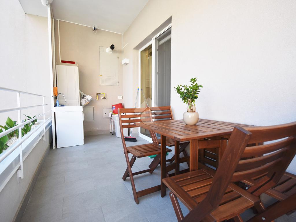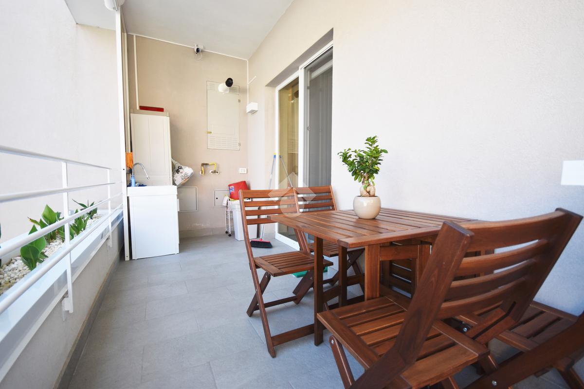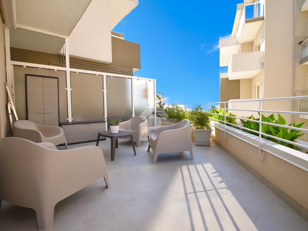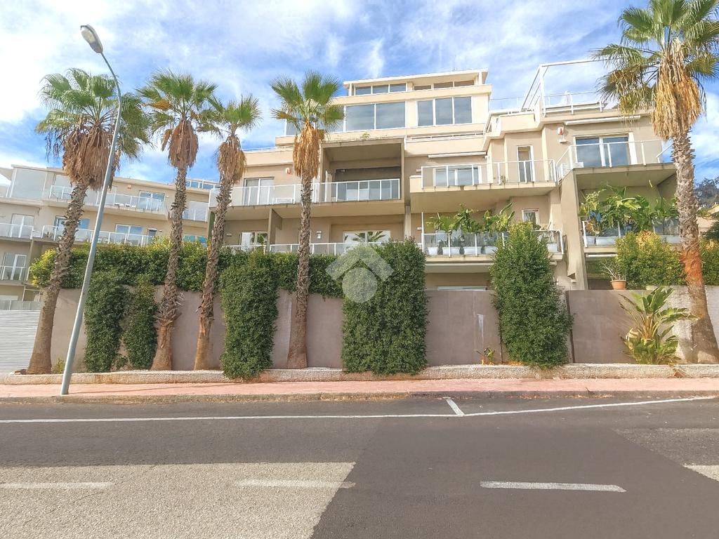 Posto al primo piano con ascensore l'immobile si presenta in ottimo stato e completamente arredato con elementi di ottima fattura. L'ingresso è in openspace con angolo cottura e zona living con uscita sul terrazzo panoramico vista mare. Questo è munito di tende da sole automatiche con sensore sensibile al vento, in caso di forte vento si richiudono. La zona notte comprende una cameretta ed una camera da letto matrimoniale con bagno in camera, vi è un secondo servizio completo. Gli infissi di ultima generazione hanno i vetri stop sol, da fuori non si vede l'interno, il riscaldamento è autonomo con caldaia e vi sono anche i climatizzatori. Inoltre vi è l'addolcitore con acqua depurata direttamente in casa, video citofono, serrande elettriche e controllo da remoto tramite applicazione. E' compreso un garage di 20 mq con saracinesca elettrica nel quale è stato da poco installata una stazione di ricarica per auto elettriche. La casa è pronta per essere abitata e non necessità di alcun tipo di intervento.