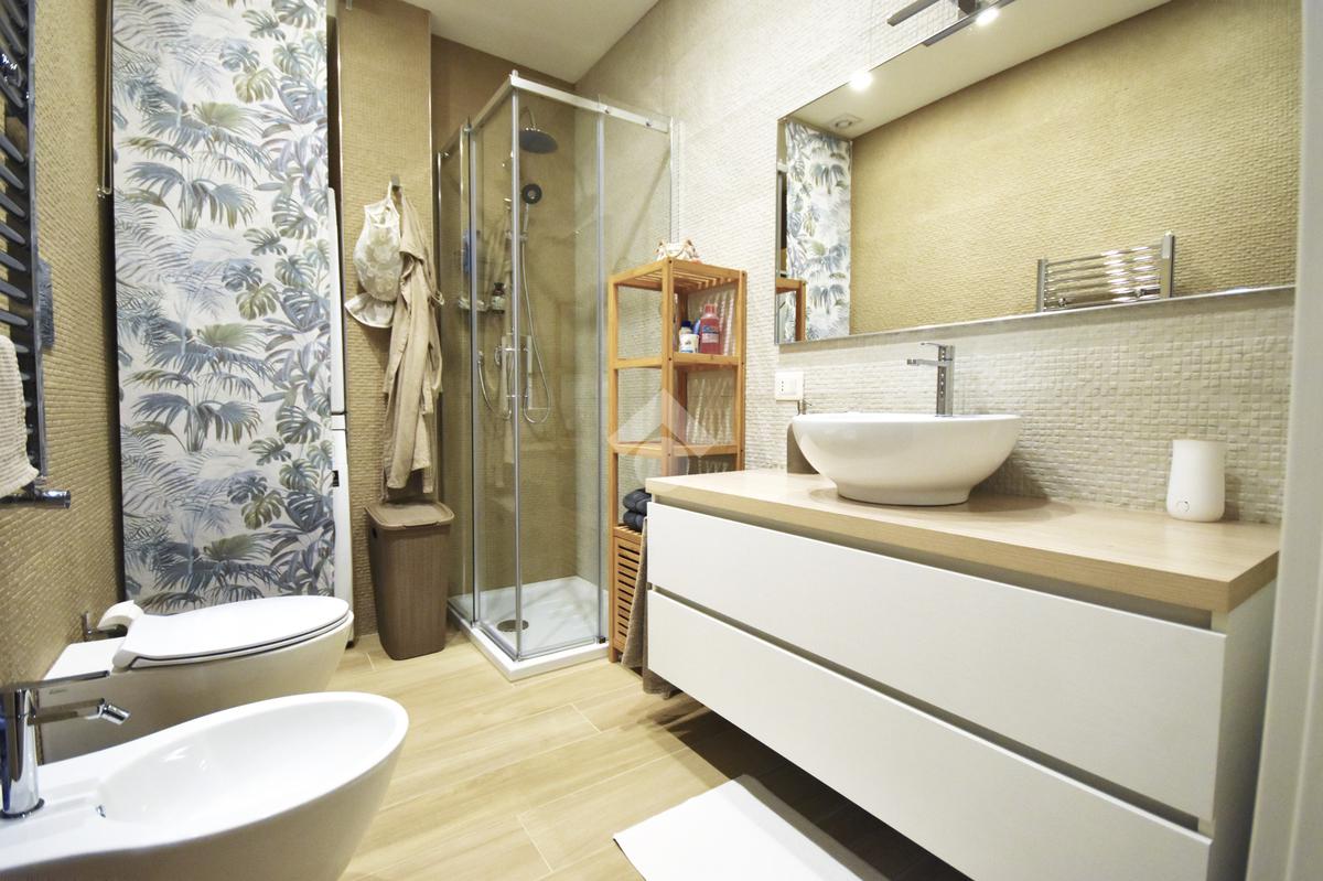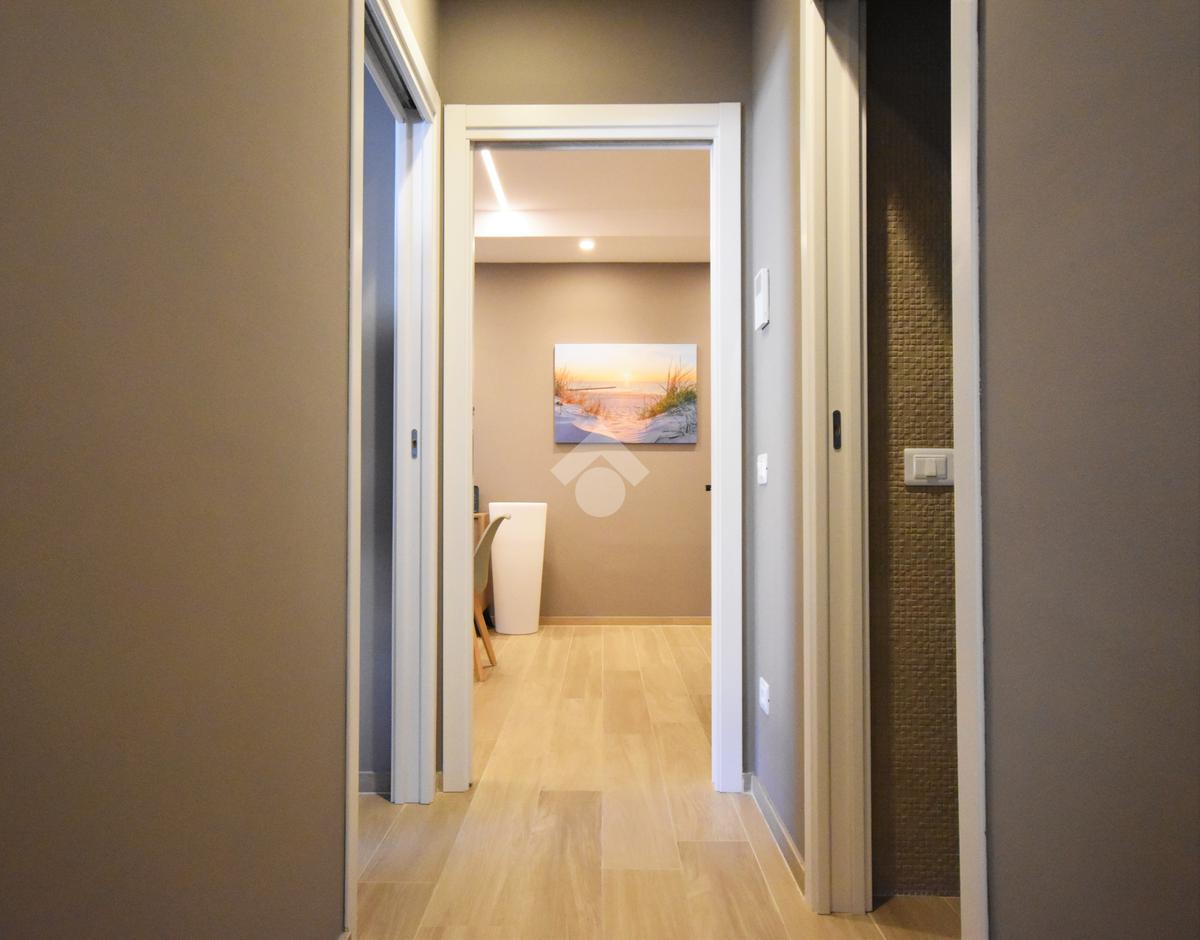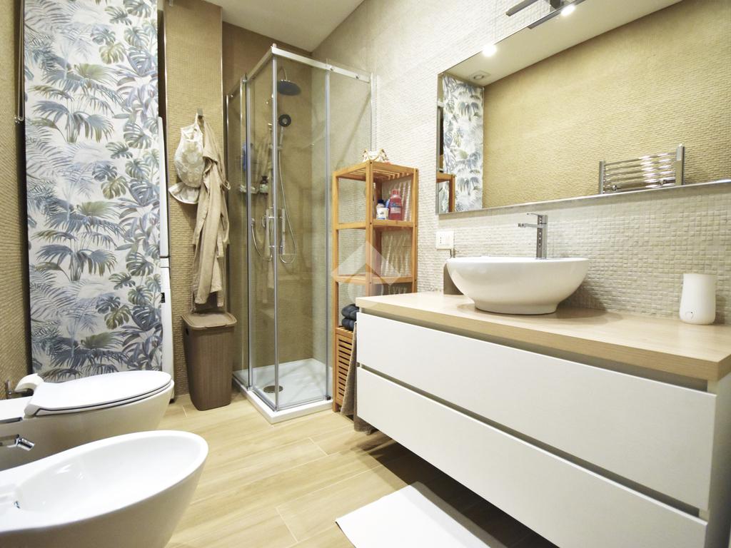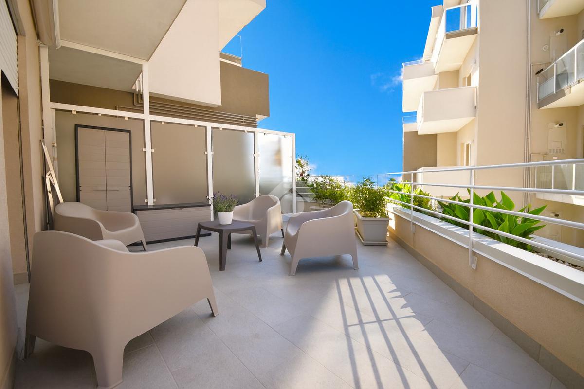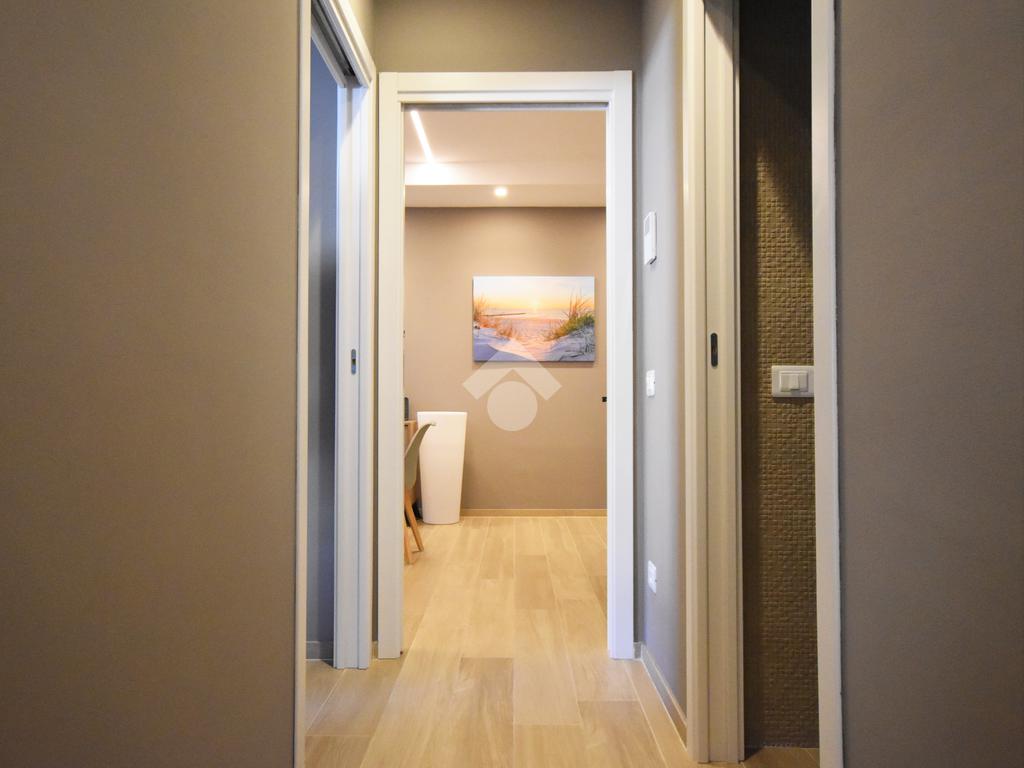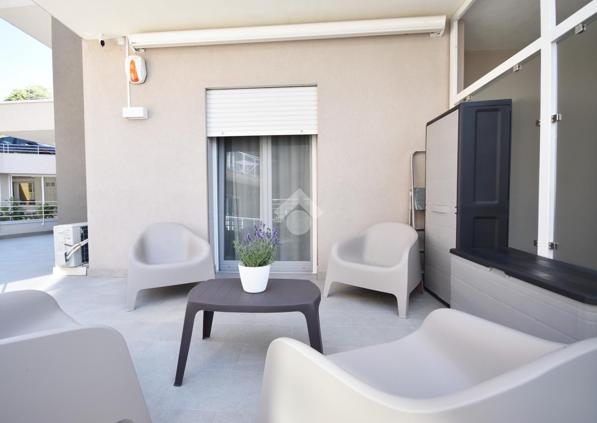 Posto al primo piano con ascensore l'immobile si presenta in ottimo stato e completamente arredato con elementi di ottima fattura. L'ingresso è in openspace con angolo cottura e zona living con uscita sul terrazzo panoramico vista mare. Questo è munito di tende da sole automatiche con sensore sensibile al vento, in caso di forte vento si richiudono. La zona notte comprende una cameretta ed una camera da letto matrimoniale con bagno in camera, vi è un secondo servizio completo. Gli infissi di ultima generazione hanno i vetri stop sol, da fuori non si vede l'interno, il riscaldamento è autonomo con caldaia e vi sono anche i climatizzatori. Inoltre vi è l'addolcitore con acqua depurata direttamente in casa, video citofono, serrande elettriche e controllo da remoto tramite applicazione. E' compreso un garage di 20 mq con saracinesca elettrica nel quale è stato da poco installata una stazione di ricarica per auto elettriche. La casa è pronta per essere abitata e non necessità di alcun tipo di intervento.