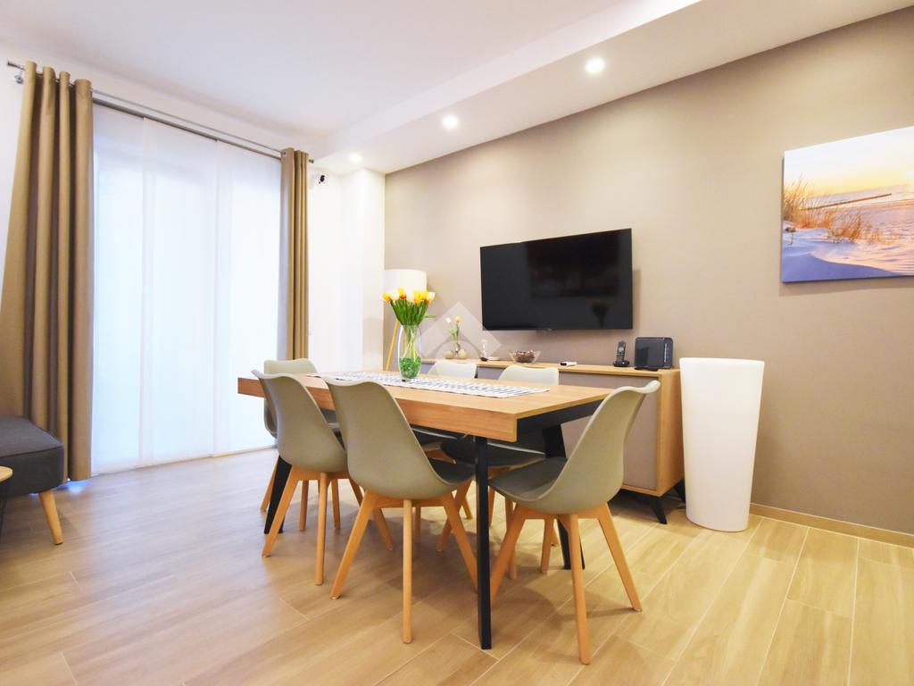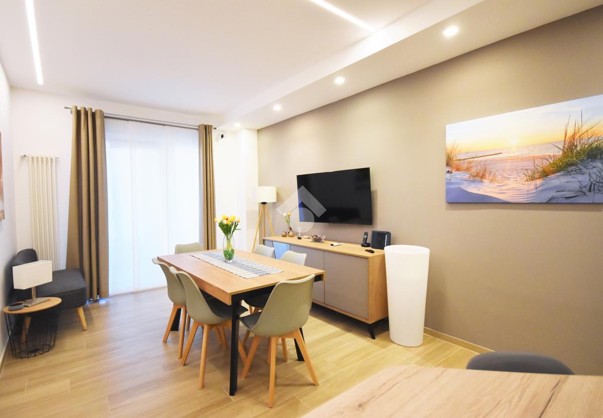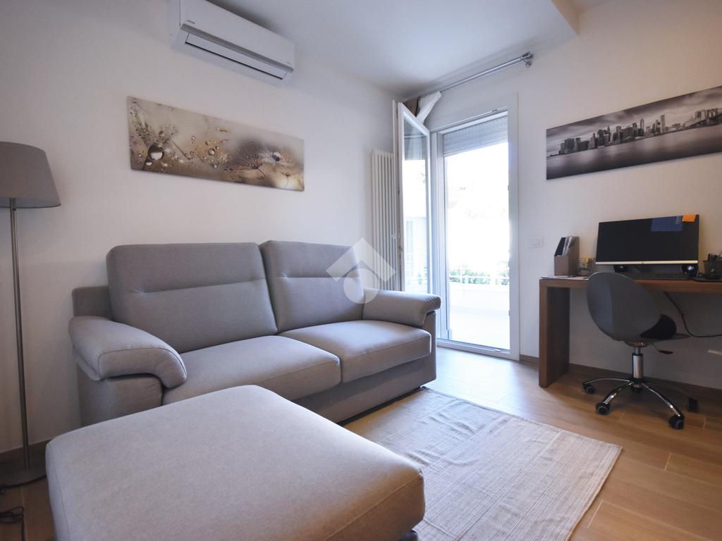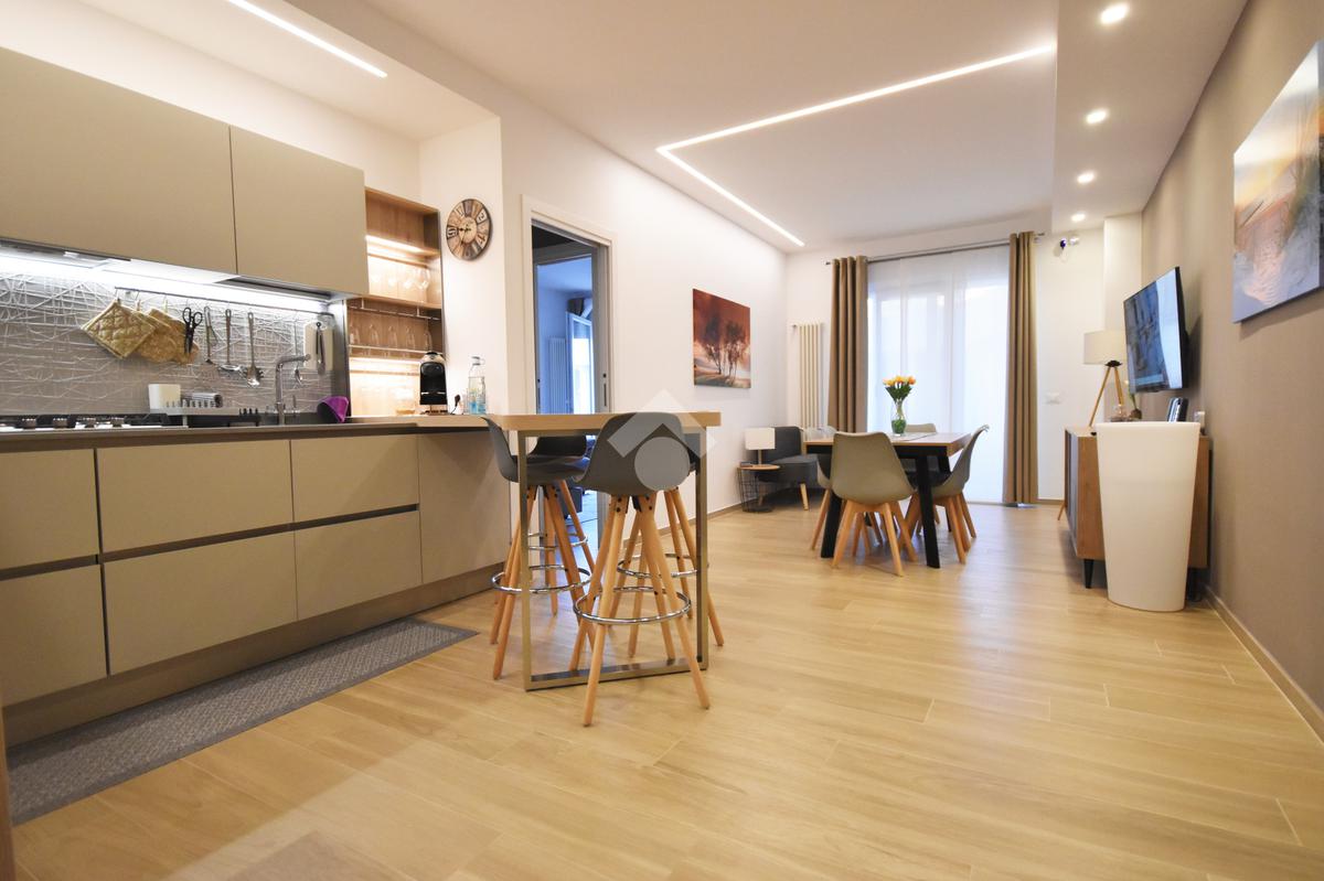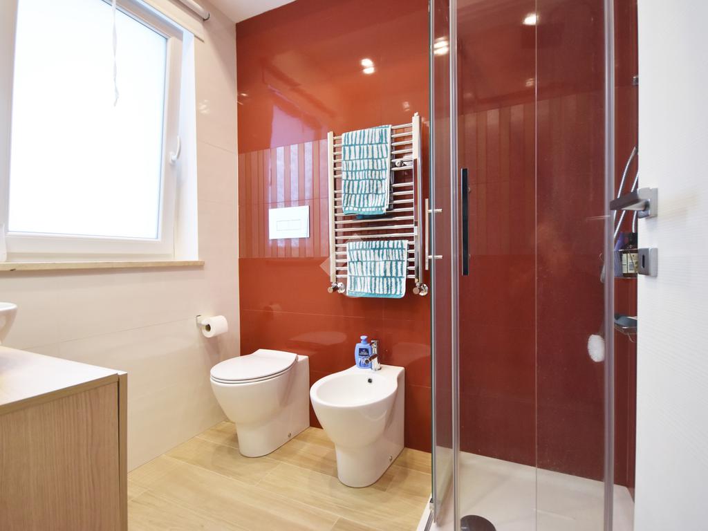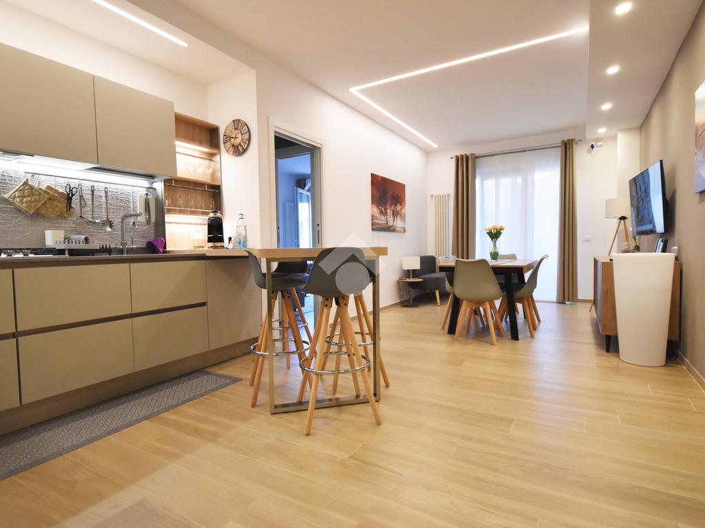 Posto al primo piano con ascensore l'immobile si presenta in ottimo stato e completamente arredato con elementi di ottima fattura. L'ingresso è in openspace con angolo cottura e zona living con uscita sul terrazzo panoramico vista mare. Questo è munito di tende da sole automatiche con sensore sensibile al vento, in caso di forte vento si richiudono. La zona notte comprende una cameretta ed una camera da letto matrimoniale con bagno in camera, vi è un secondo servizio completo. Gli infissi di ultima generazione hanno i vetri stop sol, da fuori non si vede l'interno, il riscaldamento è autonomo con caldaia e vi sono anche i climatizzatori. Inoltre vi è l'addolcitore con acqua depurata direttamente in casa, video citofono, serrande elettriche e controllo da remoto tramite applicazione. E' compreso un garage di 20 mq con saracinesca elettrica nel quale è stato da poco installata una stazione di ricarica per auto elettriche. La casa è pronta per essere abitata e non necessità di alcun tipo di intervento.