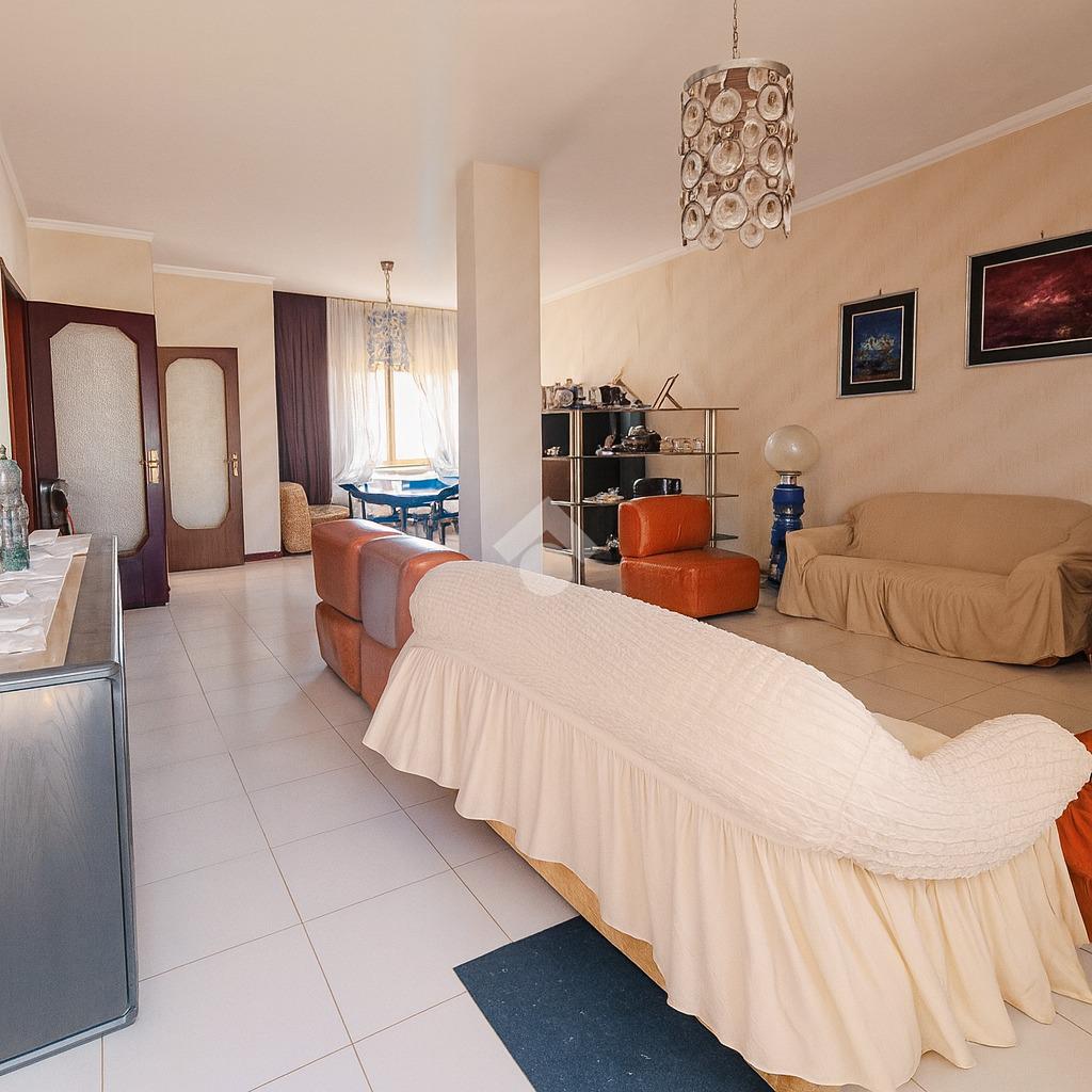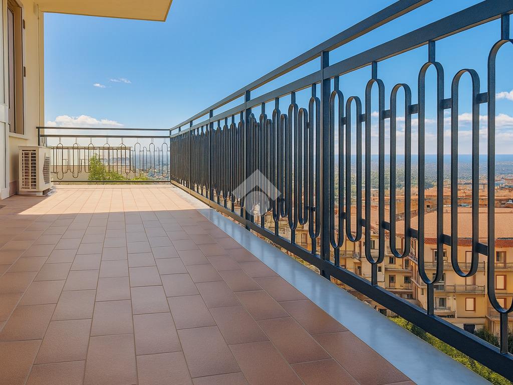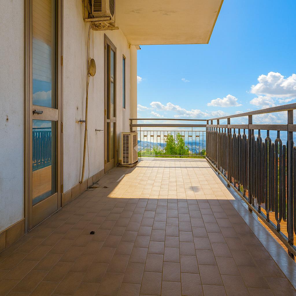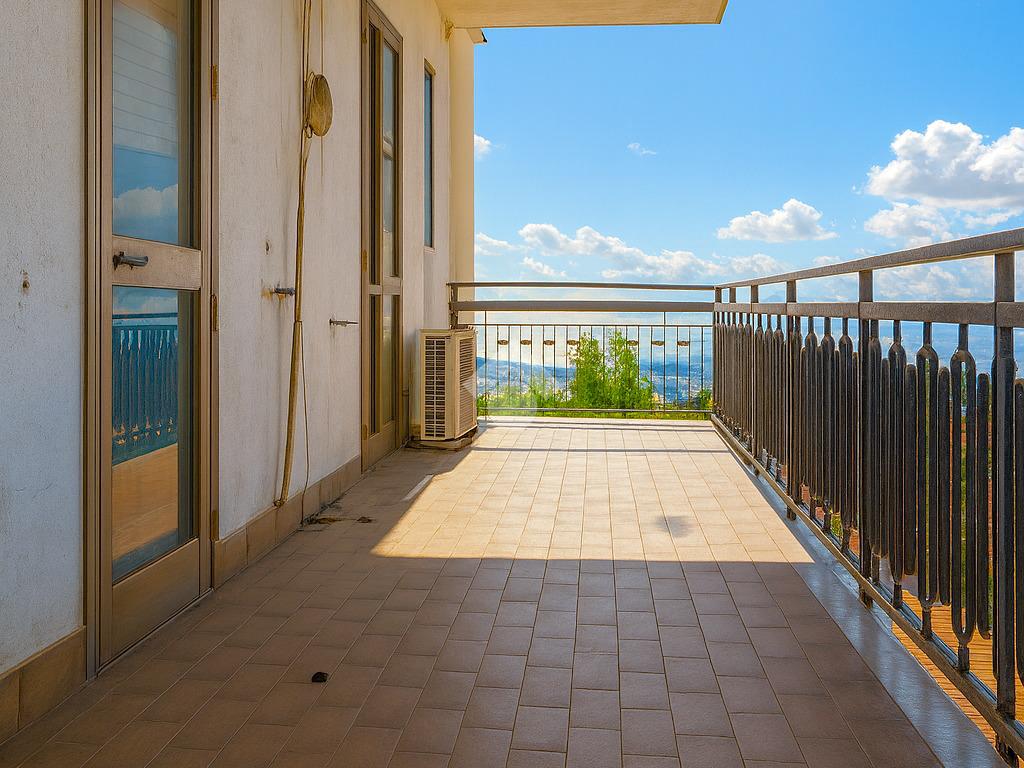 L'appartamento, posto al terzo piano con ascensore, è distribuito su una superfice di circa150 mq più le pertinenze esterne. All'ingresso ci accoglie un ampio disimpegno luminoso grazie alla presenza di un primo balcone. La cucina abitabile, anch'essa luminosa, gode di un balcone con affaccio sul mare. Collegato direttamente alla cucina vi è un salone doppio con finestra ed una porta finestra che conduce alla terrazza panoramica con vista aperta sulla costa. Sono presenti tre camere da letto matrimoniali, tutte ampie e luminose, due servizi, uno con doccia ed uno con vasca ed un comodo ripostiglio. Termoautonomo, dotato di doppio ingresso, climatizzatori e doppi infissi, l'immobile si presenta in buono stato bensì siano necessari lavori di parziale ristrutturazione.