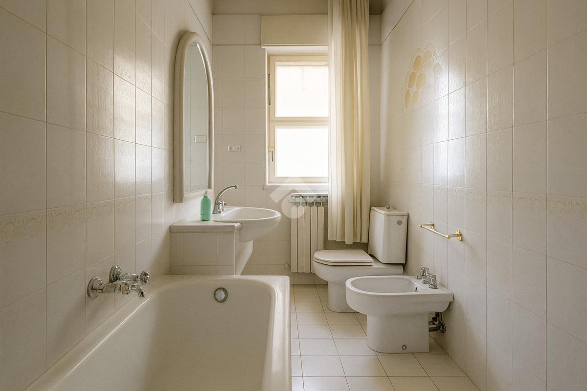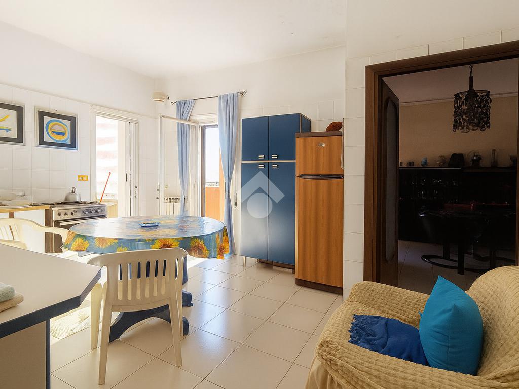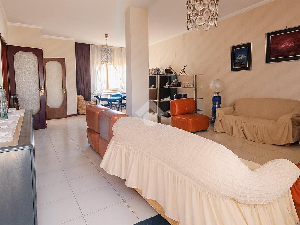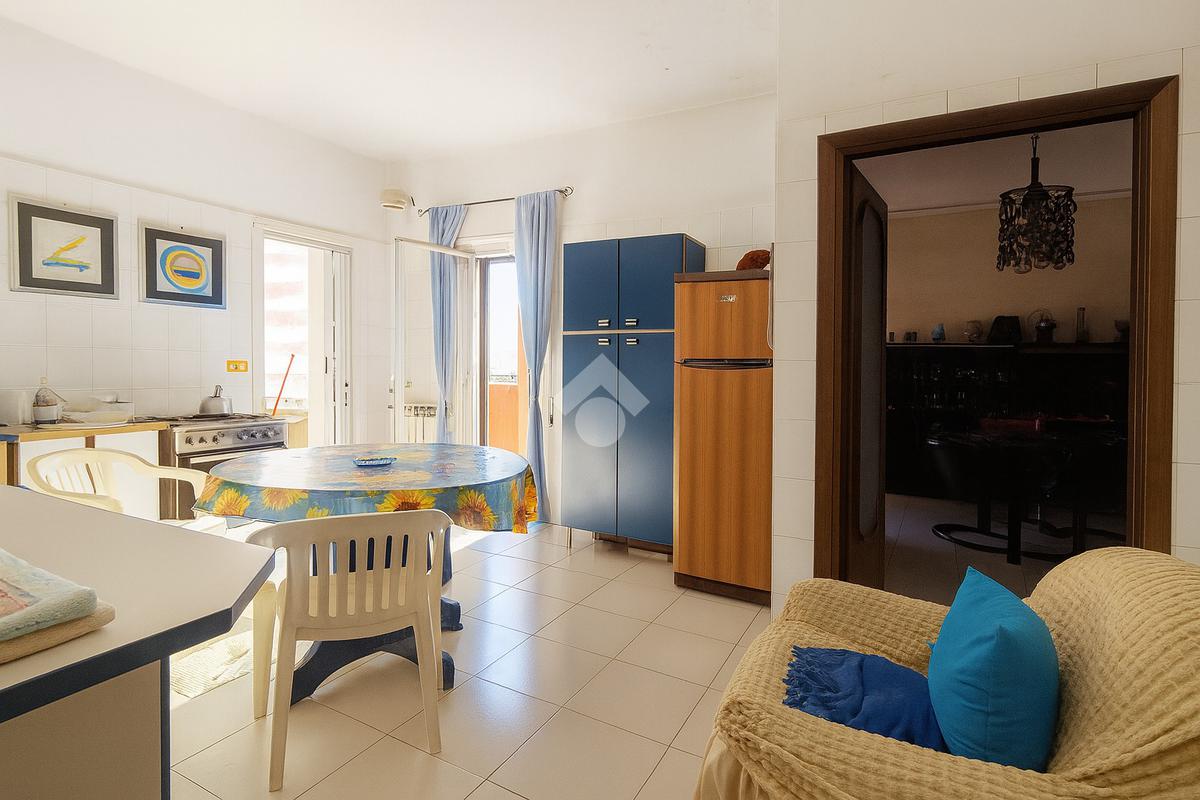 L'appartamento, posto al terzo piano con ascensore, è distribuito su una superfice di circa150 mq più le pertinenze esterne. All'ingresso ci accoglie un ampio disimpegno luminoso grazie alla presenza di un primo balcone. La cucina abitabile, anch'essa luminosa, gode di un balcone con affaccio sul mare. Collegato direttamente alla cucina vi è un salone doppio con finestra ed una porta finestra che conduce alla terrazza panoramica con vista aperta sulla costa. Sono presenti tre camere da letto matrimoniali, tutte ampie e luminose, due servizi, uno con doccia ed uno con vasca ed un comodo ripostiglio. Termoautonomo, dotato di doppio ingresso, climatizzatori e doppi infissi, l'immobile si presenta in buono stato bensì siano necessari lavori di parziale ristrutturazione.
