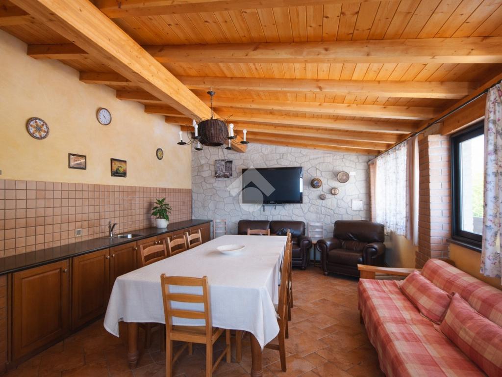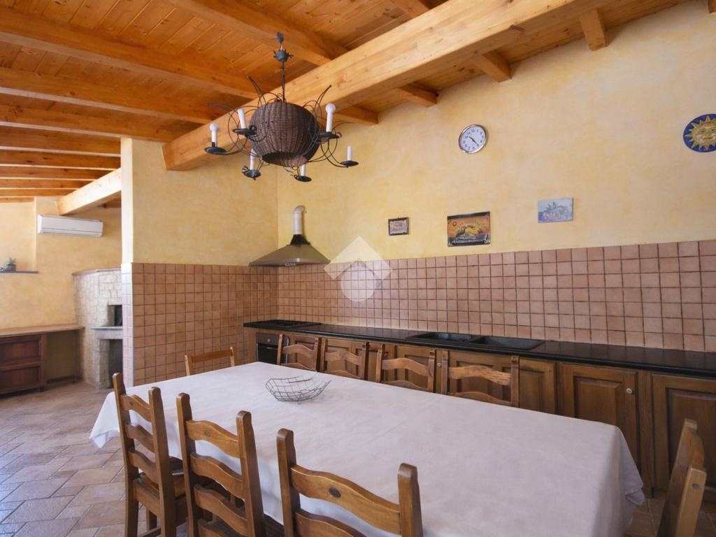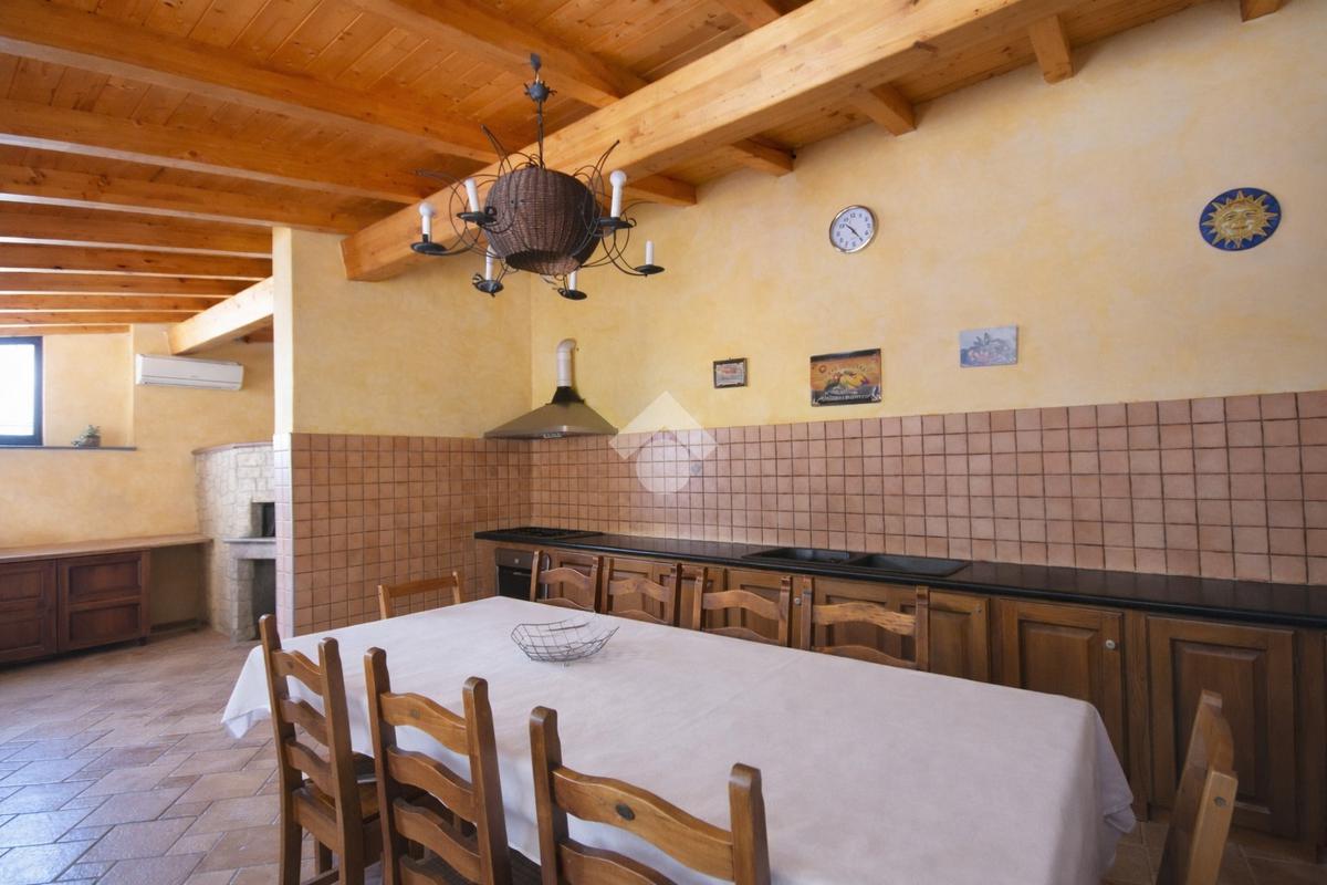 Nella parte terrazzata dello spazio esterno, è presente una dependance curata nei particolari, con cucina in muratura e forno a pietra ed ampie vetrate che illuminano l'ambiente.