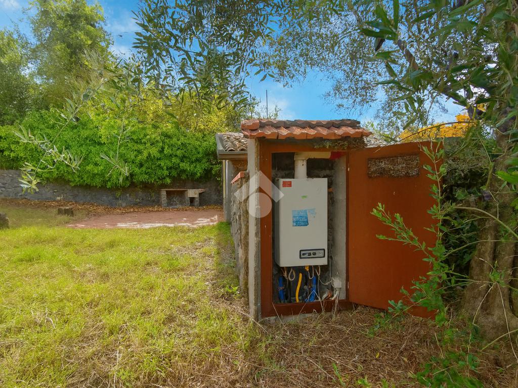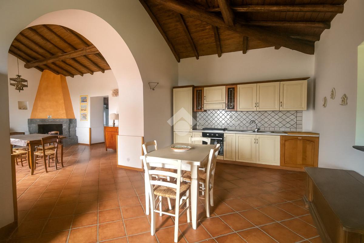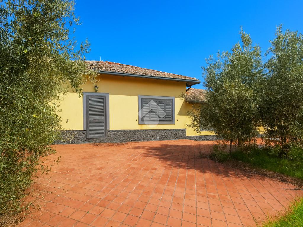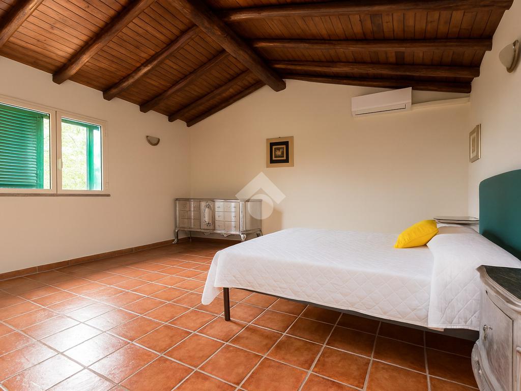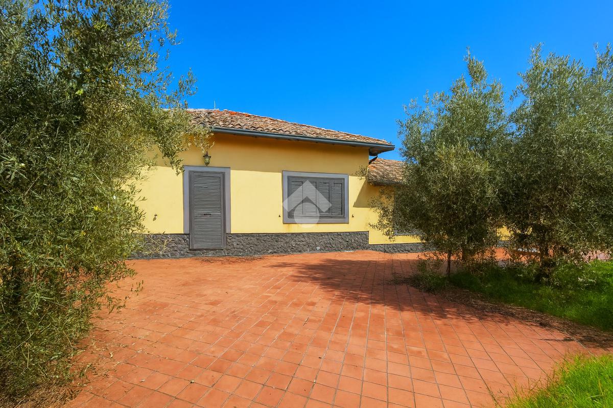 Ci troviamo a Sant'Alfio, affascinante borgo etneo, immerso tra vigneti e castagneti, luogo che conserva ancora oggi le tradizioni autentiche di un tempo. Celebre per il millenario castagno dei cento cavalli, simbolo di vita e leggenda. E' in questo contesto che proponiamo una tenuta caratteristica che si sviluppa su oltre 300 mq interni in un'ampia area verde con piante di ulivo e altre varietà di frutta. La soluzione è costituita da un corpo centrale con più entrate e da una depéndance di un vano oltre il servizio. L'ingresso principale si apre su una spaziosa sala da pranzo con camino, cucina abitabile in openspace ed ambiente che disimpegna un bagno e la prima camera da letto. Proseguendo incontriamo un grande salone di oltre 40 mq reso particolare dal tetto alto 4,30 metri con travi in legno a vista. L'eleganza delle finiture si riscontra in tutti gli ambienti, anche nelle altre due camere da letto disposte a seguire e servite da un ulteriore bagno. La proprietà è circondata dal verde della corte privata che sembra a tutti gli effetti un parco. Difatti in un angolo nascosto troviamo una struttura in legno ideale per i momenti conviviali all'aperto, ma soprattutto tra gli alberi di ulivo e le pale di fico una gradevole sorpresa, l'elegante piscina che conferisce a tutto il contesto un'atmosfera unica, il tutto incorniciato dalla vista sul golfo. La realizzazione di questa soluzione è stata ben pensata e progettata con materiali di buona fattura, il ché la rende già pronta all'uso e questo è uno degli aspetti più importanti, poiché date le dimensioni, la conformazione e le caratteristiche proprie difficilmente riscontrabili altrove, questa soluzione offre diverse possibilità, può essere adibita come residenza principale ma anche come struttura ricettiva.